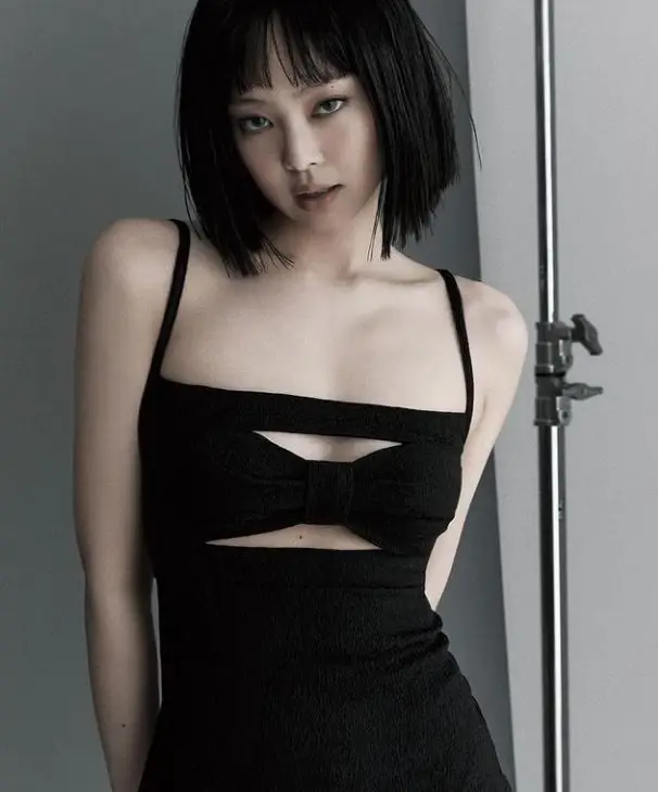 사진 속 제니는 짙은 스모키 화장과 함께 단발 스타일로 파격 변신해 눈길을 끌었습니다.