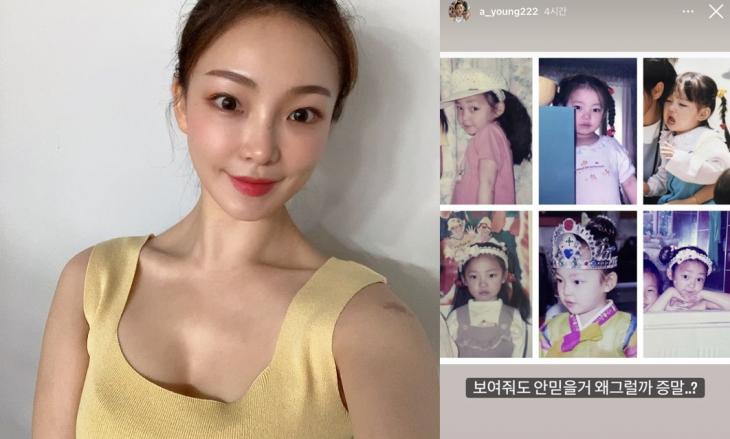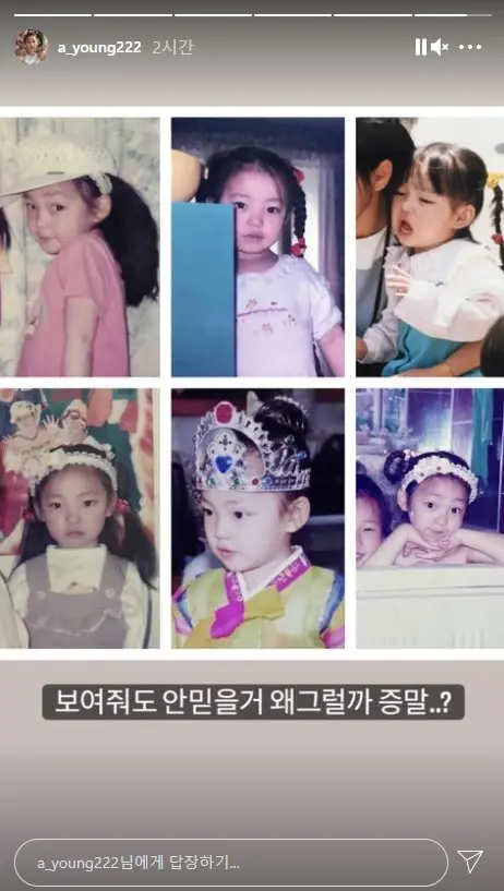 이아영은 8월 9일 오후 자신의 인스타그램 스토리에 어린 시절 사진 여러장을 게재했습니다.