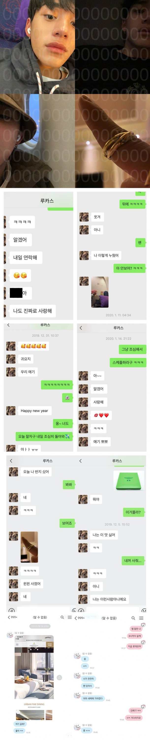 그러면서 "최근 (루카스가) 중국 갔을 때도 계속 이런식으로 연락하다가 한 달 전쯤 괘씸해서 내가 고소하겠다고 하니까 다음 날 바로 카카오톡 탈퇴하고 번호도 바꿨다"며 "X뱀질 당하면서 사귀었는데 차라리 팬으로 남을 걸 후회한다"면서 글을 마무리했습니다.