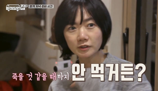 이어 배두나는 "나는 배가 고파서 죽을 때까지 안 먹거든. 진짜 배가 고파서 죽을 것 같을 때는 요리를 하는 게 안되고 당장 뭘 꺼내 먹어야 해서 밥이랑 김, 김치만 먹는다"고 설명했습니다.