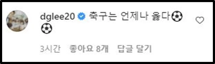 이날 아들의 쓰러진 모습을 본 이동국은 "축구는 언제나 옳다"라는 댓글을 남기며 열정을 칭찬했습니다.