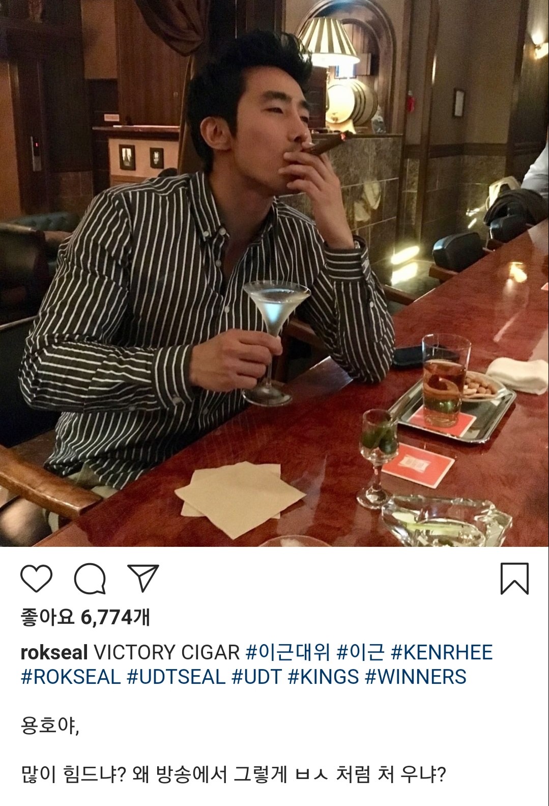 이근은 28일 자신의 인스타그램에 "용호야, 많이 힘드냐? 왜 방송에서 그렇게 XX처럼 우냐?"며 방송 중단을 선언한 김용호를 비꼬았습니다.