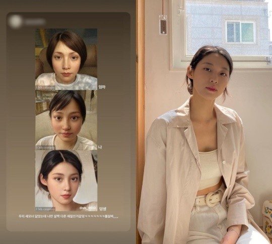 설현의 친 언니는 "우리 세 모녀 닮았는데 나만 살짝 다른 제질인 거 같아 ㅋㅋㅋㅋ 볼살바..."라는 문구와 함께 세 사람의 셀카에 애니메이션 필터를 적용한 사진을 공개했습니다.