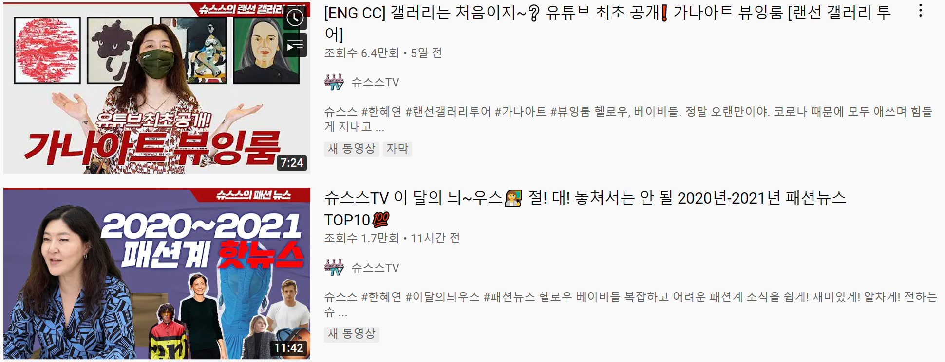 활동을 재개한 한헤연의 '슈스스tv'에는 새롭게 2개의 영상이 업로드 됐습니다. 조회수는 각 각 64000회, 17000회를 기록하고 있습니다.