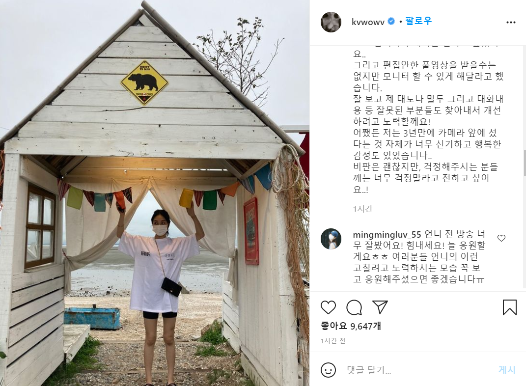 권민아는 1일 자신의 인스타그램에 장문의 글을 게재하고 3년 만에 방송을 통해 복귀한 소감을 밝혔습니다.