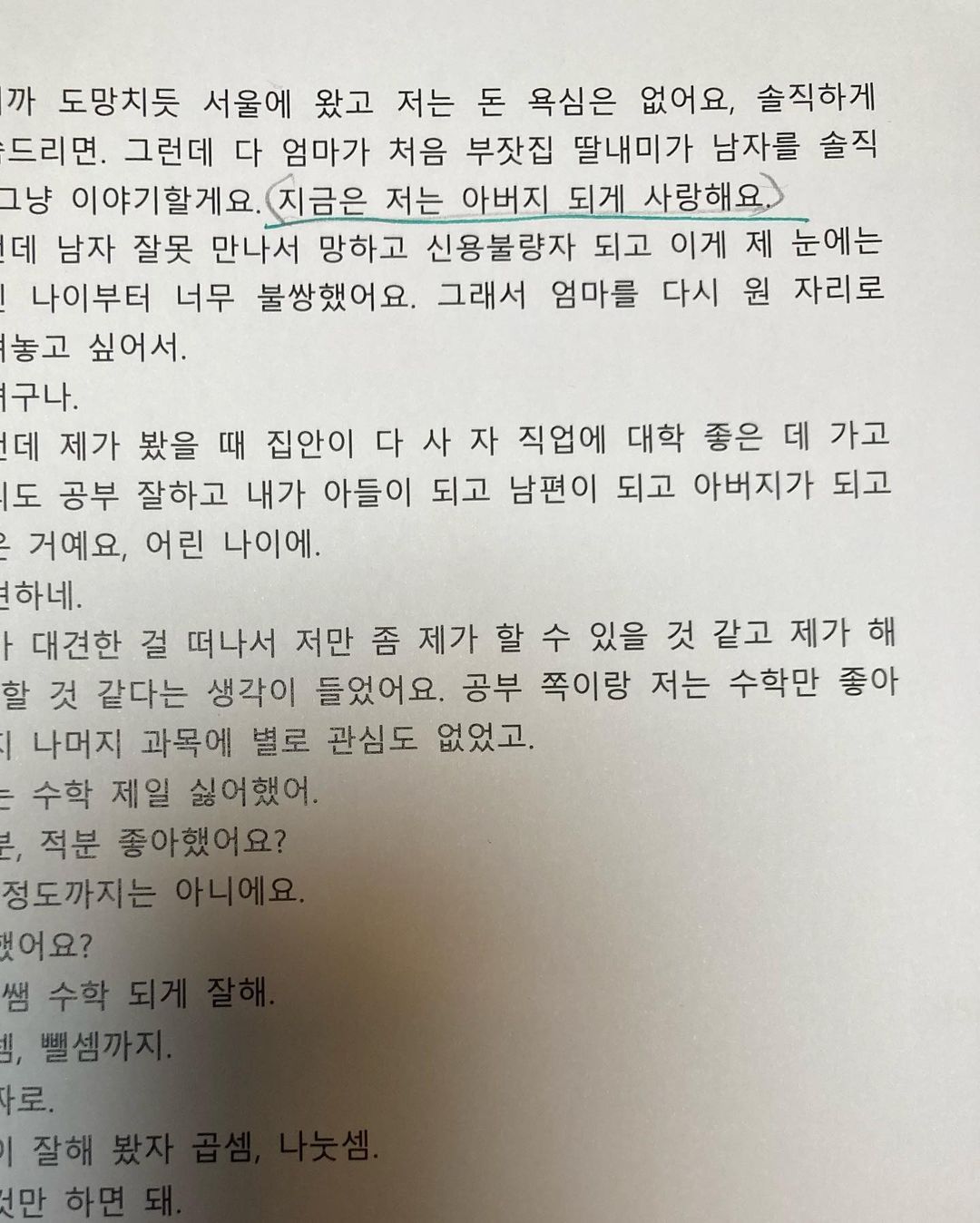 아버지를 사랑한다는 말과 지금은 모든걸 용서한다는 말, 그리고 누구보다도 어렸을 때 아버지를 그리워하고 기다렸다는 말,