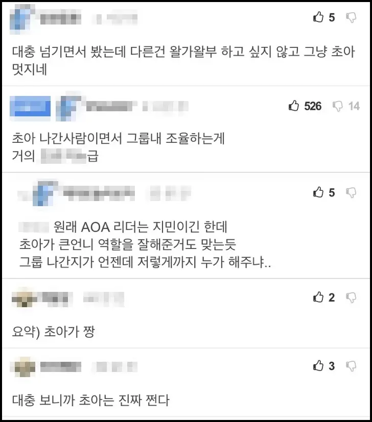 팀을 탈퇴한 지 4년이 지난 후에도 큰언니로서 리더십을 보여준 초아에게 네티즌들은 칭찬을 아끼지 않았습니다.