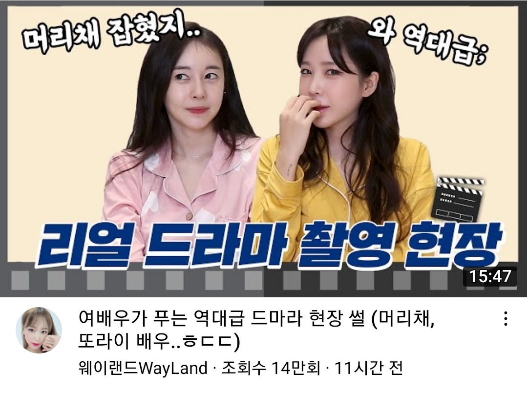 9월 10일 오후 크레용팝 출신 웨이의 유튜브 채널 '웨이랜드'에 '여배우가 푸는 역대급 드라마 현장 썰(머리채, 또라이 배우..ㅎㄷㄷ)'이라는 제목의 영상이 올라왔다. 웨이와 허이재는 ‘당신은 선물’에서 인연을 맺은 사이.