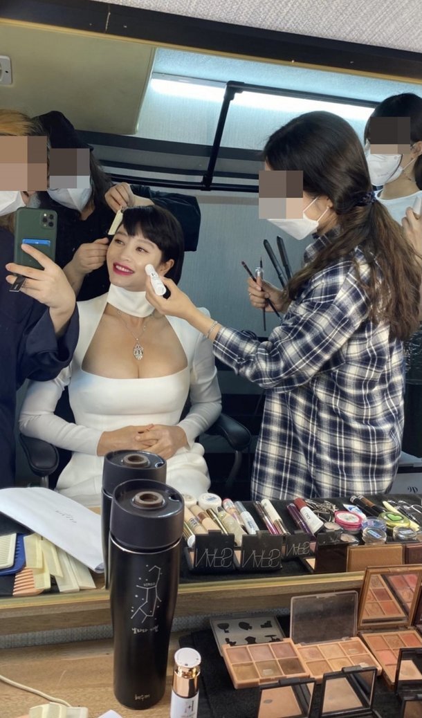 공개된 사진에는 촬영 현장에서 메이크업을 받는 김혜수의 모습이 담겨있습니다.