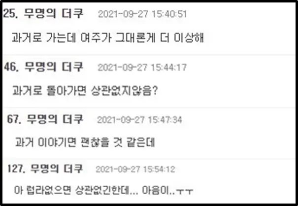 또 다른 네티즌들은 "과거로 가는데 여주인공이 그대로인 게 더 이상해", "과거로 돌아가면 상관없지 않냐", "과거 이야기면 괜찮을 것 같은데", "러브라인 없으면 상관없긴 한데" 등 댓글을 남겼습니다.