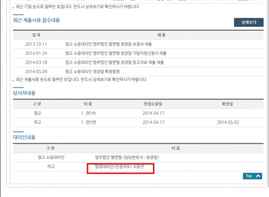 이어 "조동연은 결혼 4년 만인 2012년 11월 16일에 협의이혼을 하게 되는데 이후 남편은 유전가 불일치 결과를 가지고 위자료 청구 소송과 친생부인 소송을 제기했다. 가세연은 판결문도 가지고 있다"고 주장하며 재판 송무 기록 일부만 공개했습니다.