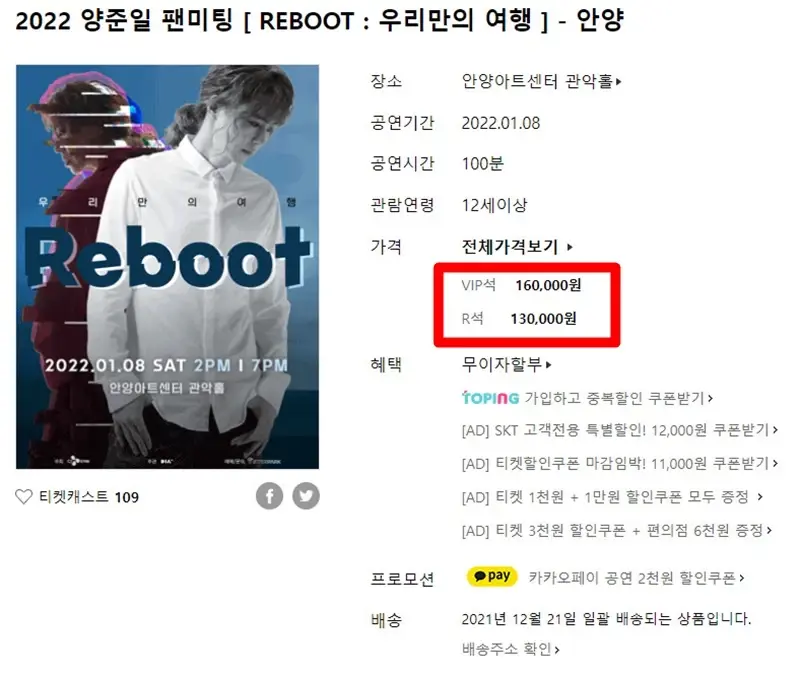 한편 양준일 팬미팅은 내년 1월 8일 경기 안양아트센터 관악홀에서 개최합니다. 16일 오후 6시 기준 1회차가 전석 매진된 상태입니다.