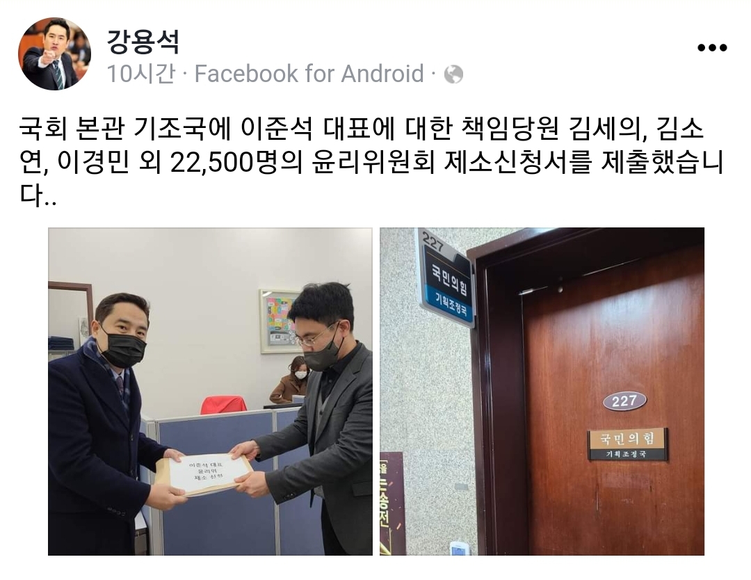 | 강용석, 이준석 국민의 힘 윤리위원회 제소 "'성상납' 부인하면 동영상 깐다…최악 원하냐?" (0) | 2021.12.29 |