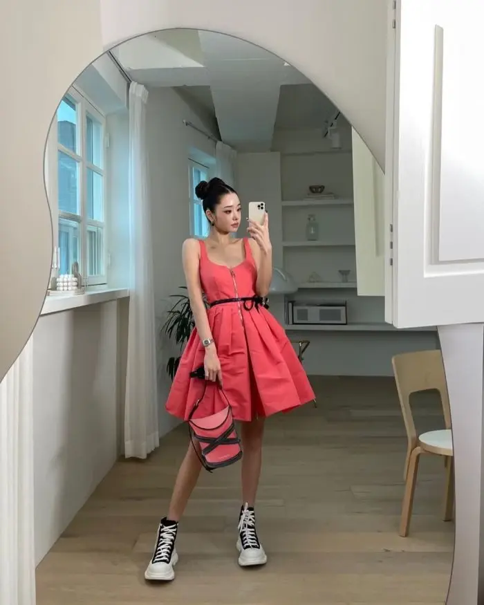그는 깊게 파인 가슴 라인 원피스를 자신만의 스타일로 소화하며 글래머 몸매를 마음껏 뽐냈습니다.