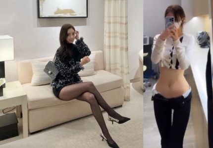 공개된 사진에는 군살 없는 허리, 탄력 있는 복부, S라인이 완벽한 골반이 눈길을 끕니다.