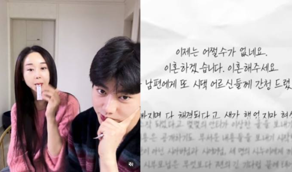 이날 함소원은 유튜브 채널 '소원 TV'에 이혼 소식을 알렸습니다. 영상에서 자필로 "저와 우리 가족은 이제 너무 지쳤다. 이제는 어쩔 수가 없다"며 "이혼하겠다. 이혼해 달라고 남편에게 또 시댁 어르신들께 간청드렸었다"고 밝혔습니다.