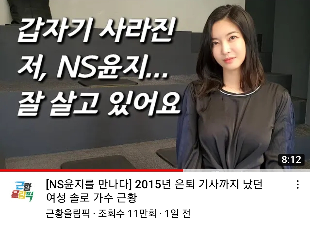 20일 유튜브 채널 ‘근황올림픽’에는 NS윤지가 출연해 소식을 알렸습니다.